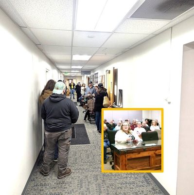 The hearings were held in the county commission room both in the morning and in the evening on Wednesdy, and drew an overflow crowd at the latter meeting.